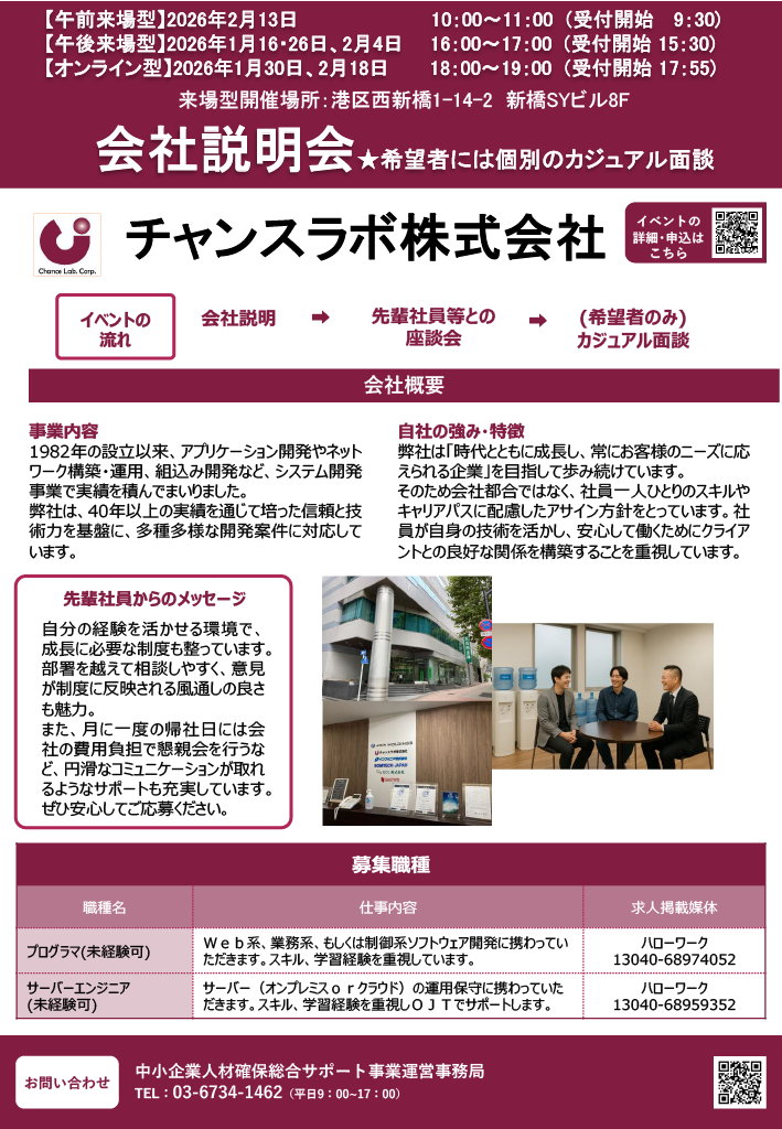 このたび、チャンスラボでは企業説明会を開催いたします。